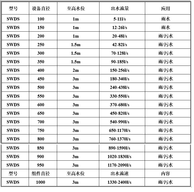 SWDS 100到SWDS 400    与支路压力管道DN200结合