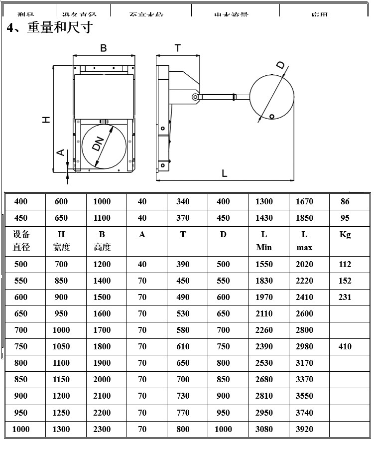浮筒限流器尺寸的选择依据是出水流量。如果预期的流量控制可以由多种型号的调流阀来实现,那么可以选择较小的型号。选择一个型号时,需要考虑堵塞的可能性,因此闸板和出口底部的间隙越大,堵塞的风险越小。
