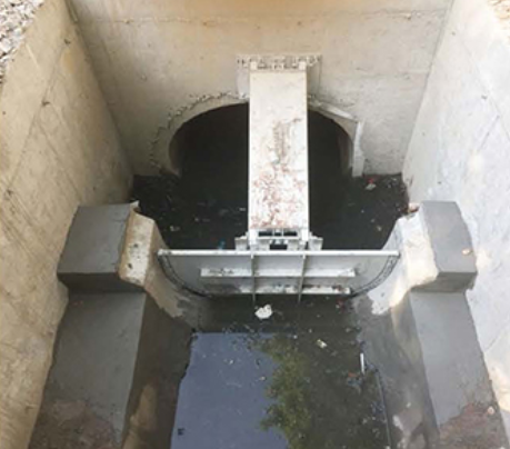 闲置期间,拦蓄门可以锁定在拦蓄截断面的上方,不占用管道任何排水空间。雨季时,拦蓄门保持开启状态,不会影响管道的排水功能。断电时,亦可保持开启状态。